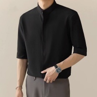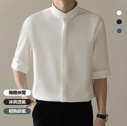 2025新款冰絲中袖襯衫 男士輕熟風 夏季薄款垂感休閒素色襯衫衣服 通勤約會皆宜